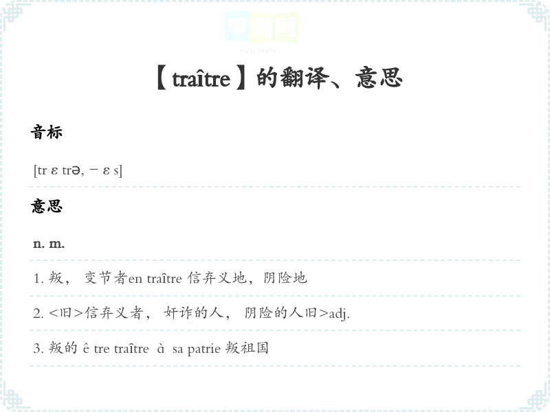 【traître】是什么意思、字义解释
