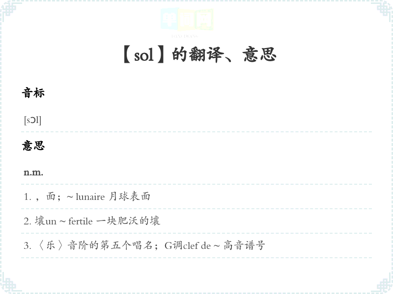 【sol】是什么意思、字义解释