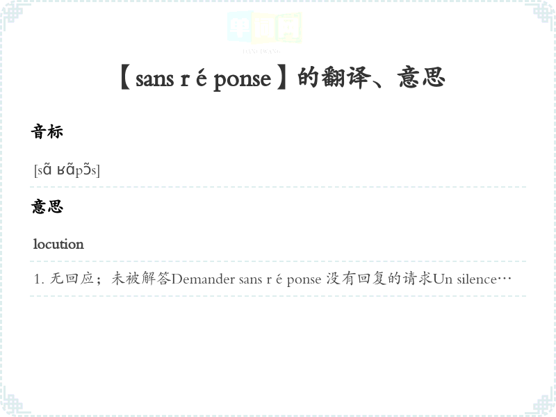 无回应;未被解答Demander sans réponse 没有回复的请求Un silence sans réponse 没有回复的沉默