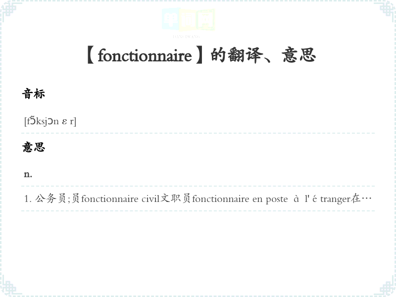 【fonctionnaire】是什么意思、字义解释