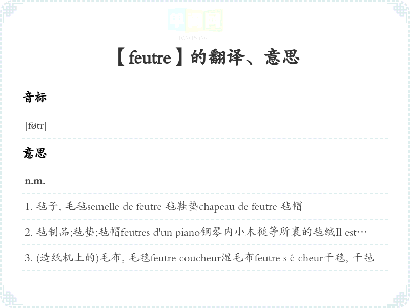 【feutre】是什么意思、字义解释