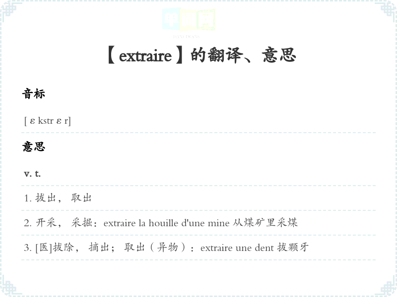 【extraire】是什么意思、字义解释