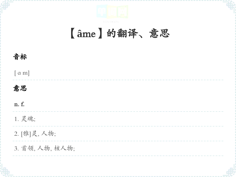 【âme】 词源:、 词根:、 近义词:、 反义词: 联想词