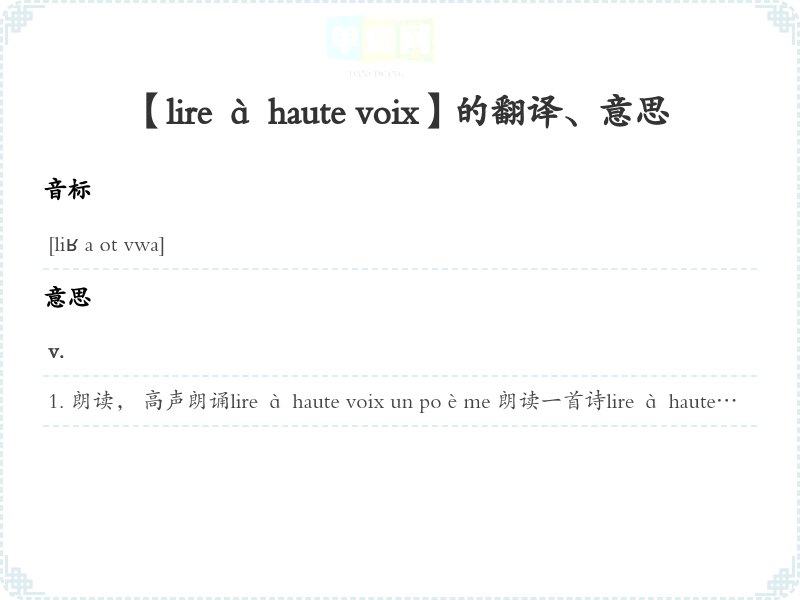 朗读, 高声朗诵lire à haute voix un poème 朗读一首诗lire à haute voix un livre 朗读一本书