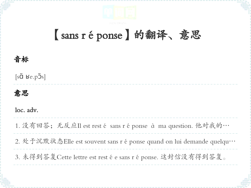 【sans réponse】是什么意思、字义解释