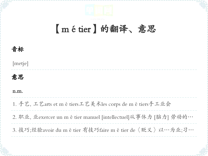 【métier】是什么意思、字义解释
