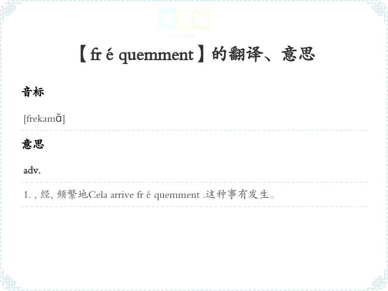 【fréquemment】 联想:、 近义词:、 反义词: 联想词