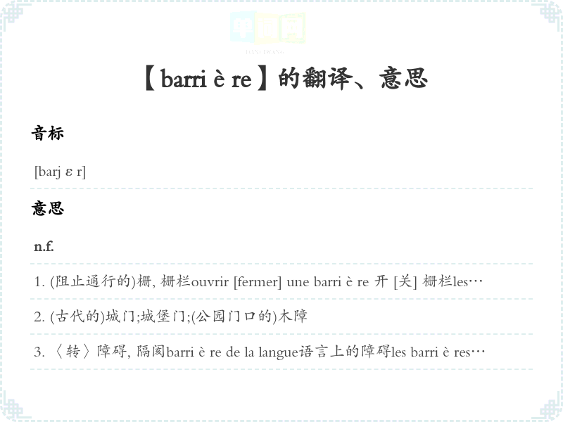 【barrière】是什么意思、字义解释