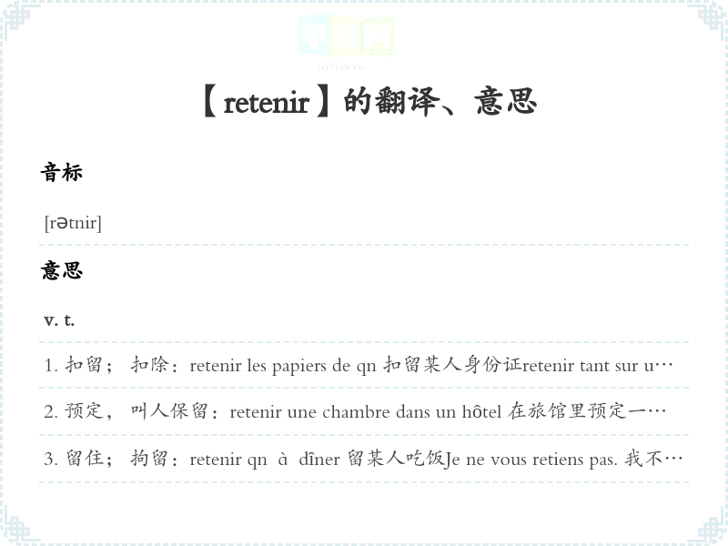 【retenir】是什么意思、字义解释