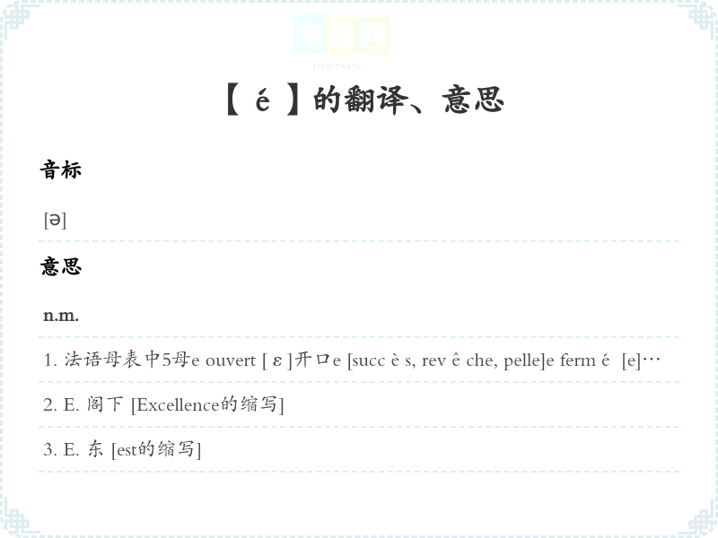 法语母表中5母e ouvert [ε]开口e [succès, revêche, pelle]e fermé [e]口e [bonté, assez]e caduc [ə]弱化e [renouveau]e muete [soierie]