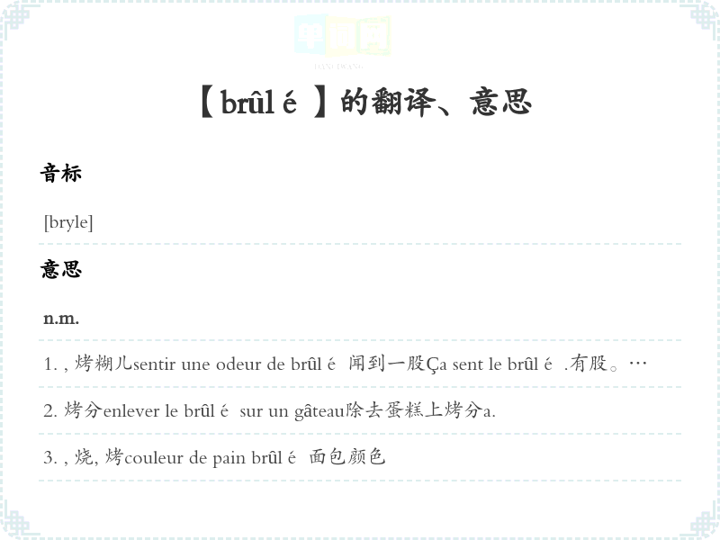 【brûlé】是什么意思、字义解释
