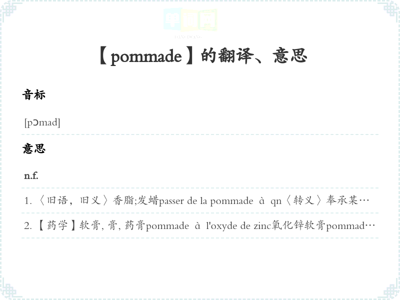 【pommade】是什么意思、字义解释