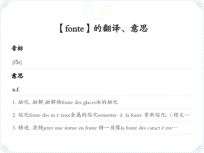 【fonte】 近义词:、 反义词: 联想词