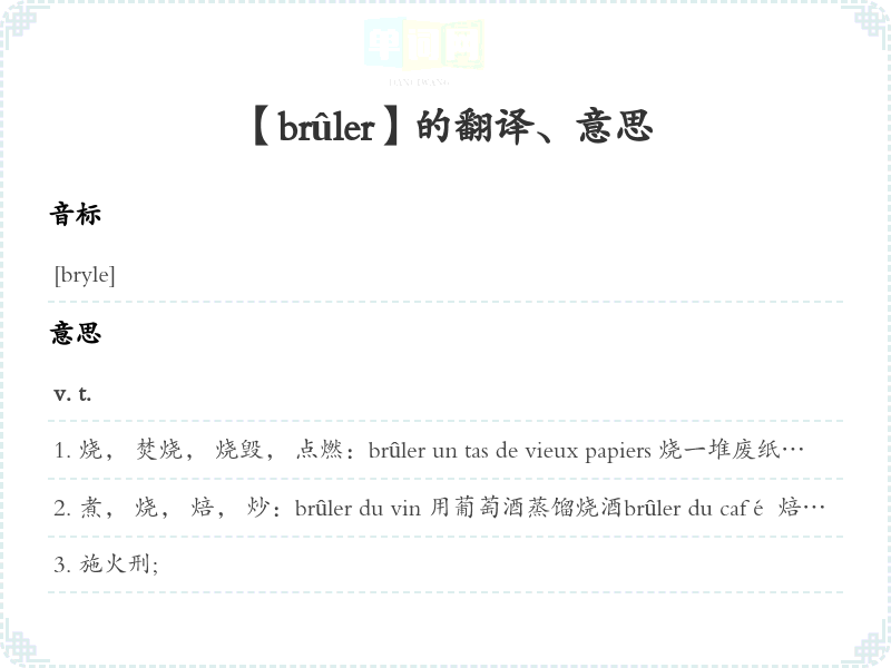 【brûler】是什么意思、字义解释