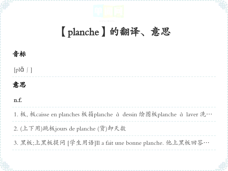 【planche】是什么意思、字义解释