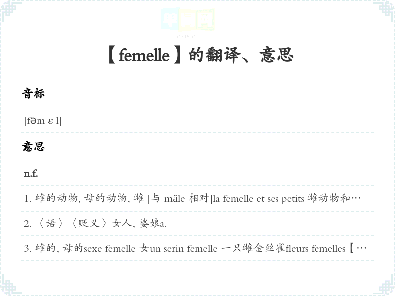 【femelle】是什么意思、字义解释