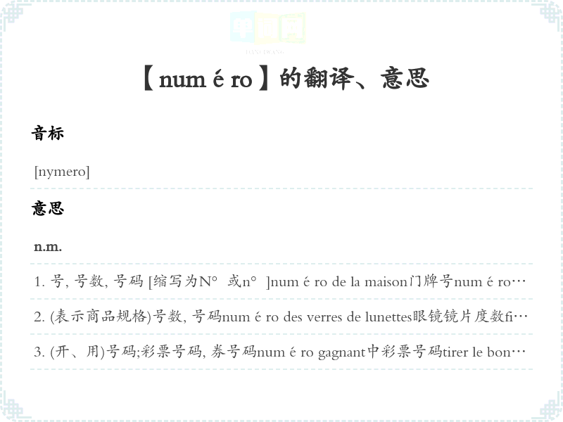 【numéro】是什么意思、字义解释