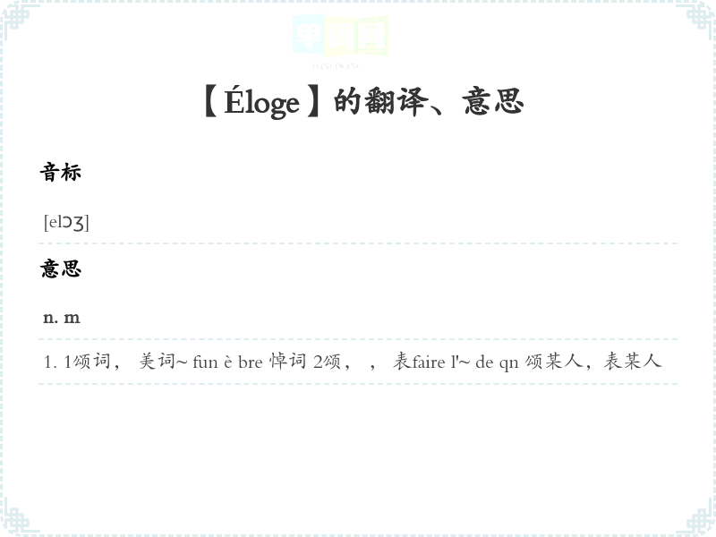 【Éloge】 联想:、 近义词:、 反义词: 联想词