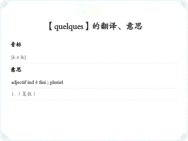 【quelques】是什么意思、字义解释