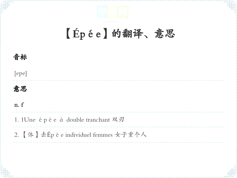 【Épée】是什么意思、字义解释