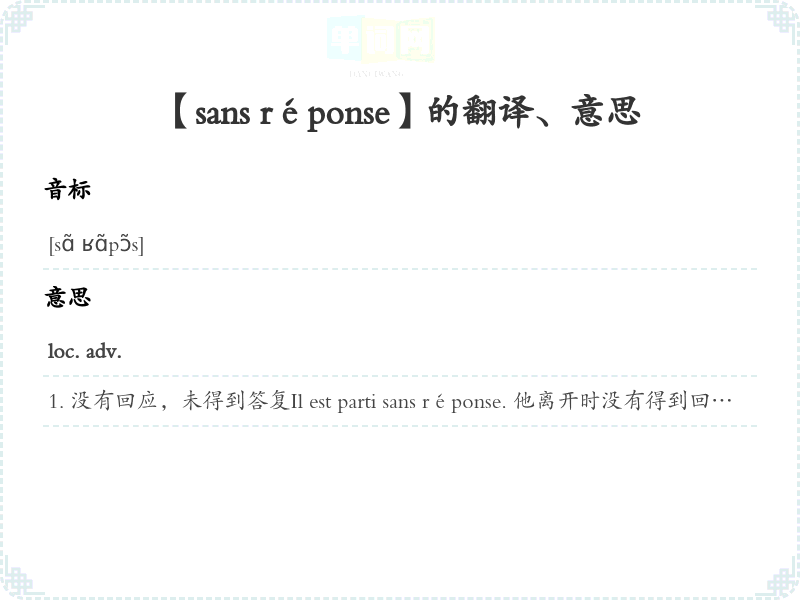 【sans réponse】是什么意思、字义解释