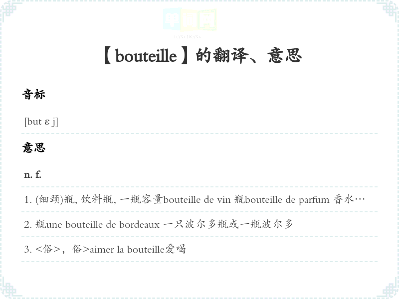【bouteille】是什么意思、字义解释