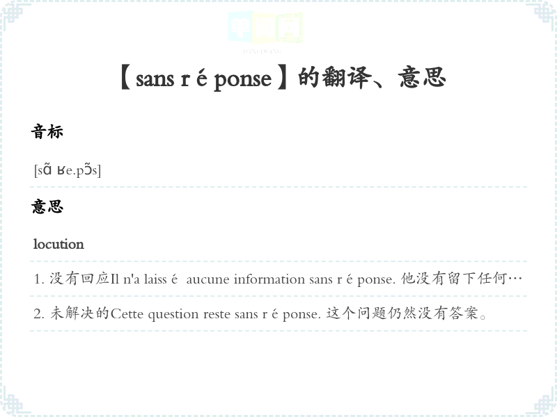 没有回应Il n'a laissé aucune information sans réponse. 他没有留下任何未回应的信息。