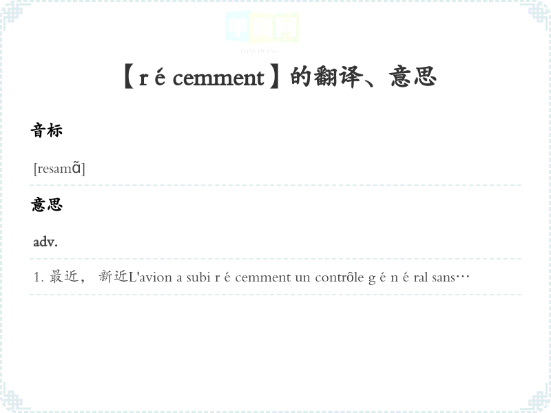 【récemment】是什么意思、字义解释
