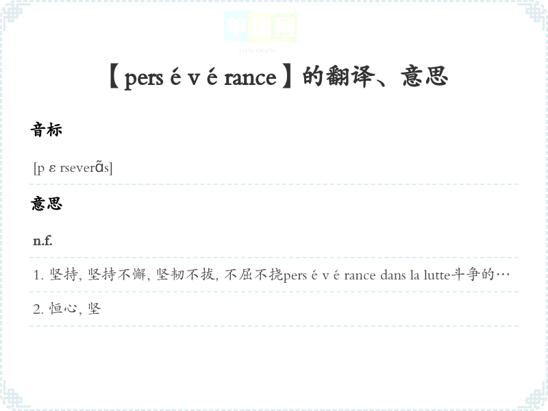 【persévérance】 联想:、 近义词:、 反义词: 联想词