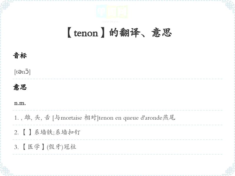 【tenon】是什么意思、字义解释