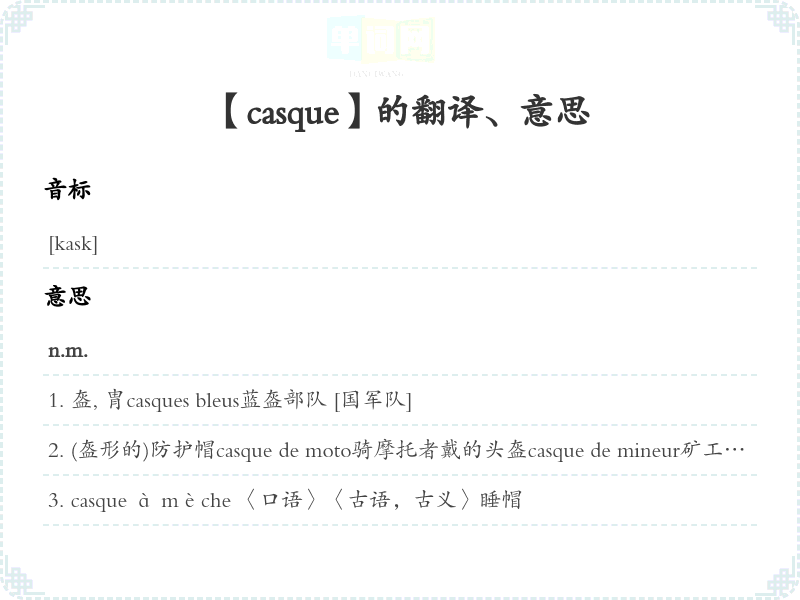 【casque】是什么意思、字义解释