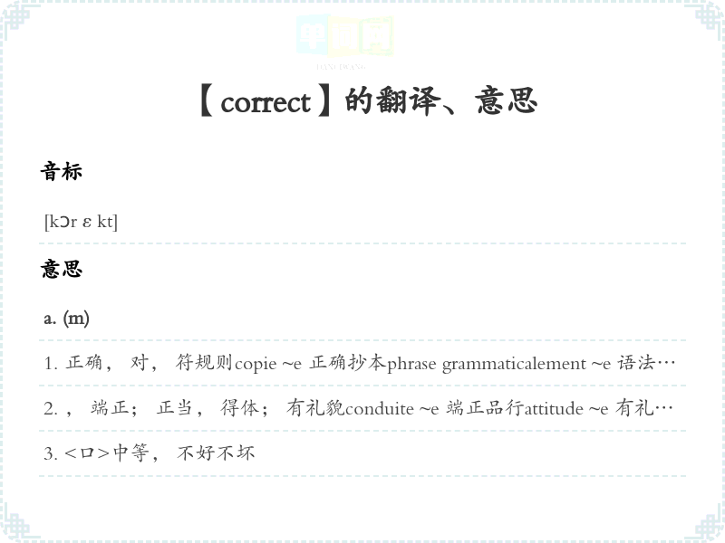 【correct】是什么意思、字义解释
