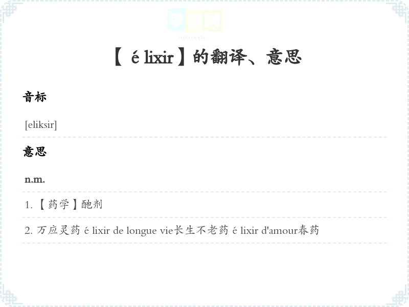万应灵药élixir de longue vie长生不老药élixir d'amour春药