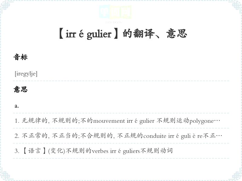 【irrégulier】是什么意思、字义解释