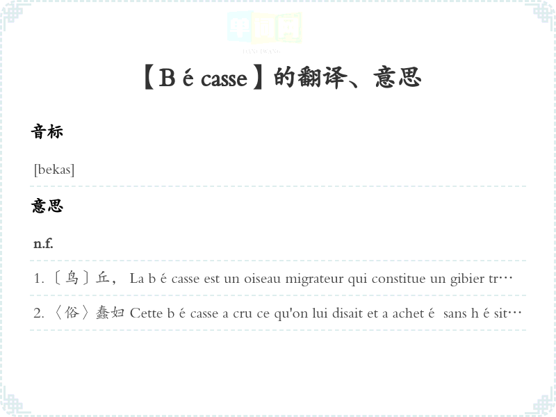 【Bécasse】是什么意思、字义解释