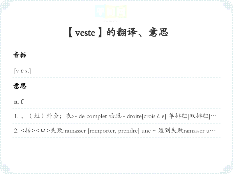 【veste】是什么意思、字义解释