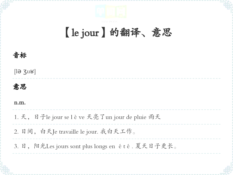 【le jour】是什么意思、字义解释