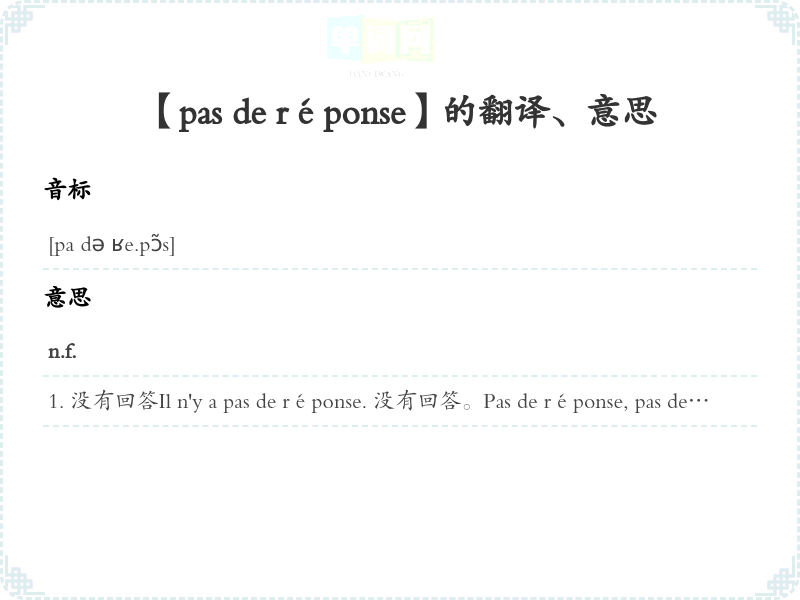 没有回答Il n'y a pas de réponse. 没有回答。Pas de réponse, pas de problème. 没有回答,没问题。