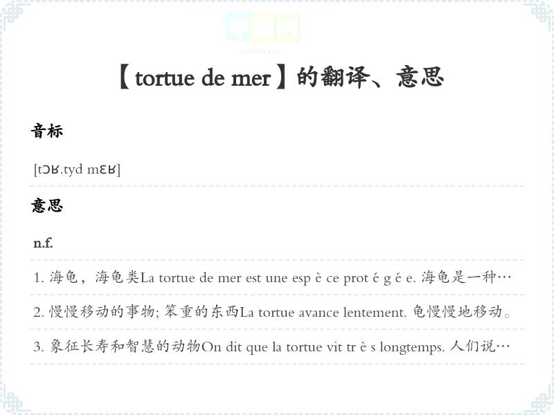 【tortue de mer】是什么意思、字义解释