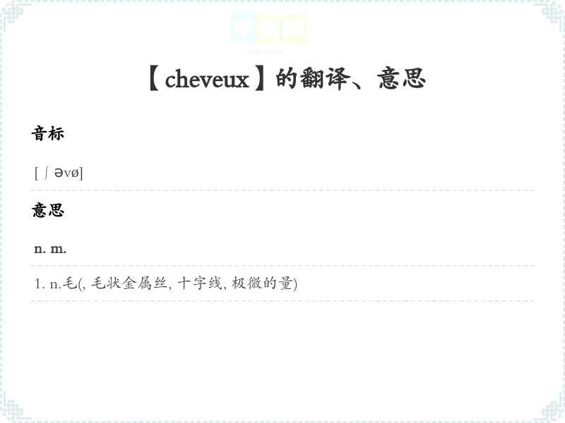 n.毛(, 毛状金属丝, 十字线, 极微的量)