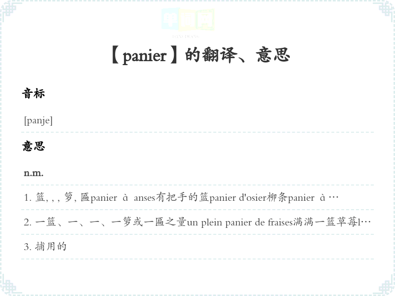 【panier】是什么意思、字义解释