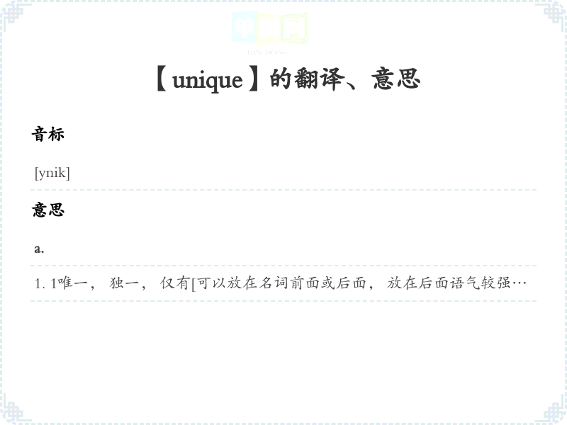 【unique】是什么意思、字义解释