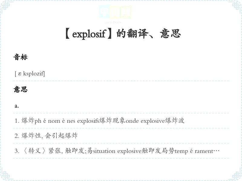 【explosif】是什么意思、字义解释