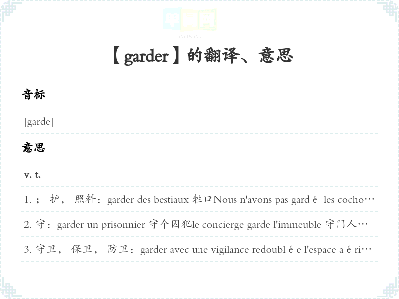 【garder】是什么意思、字义解释