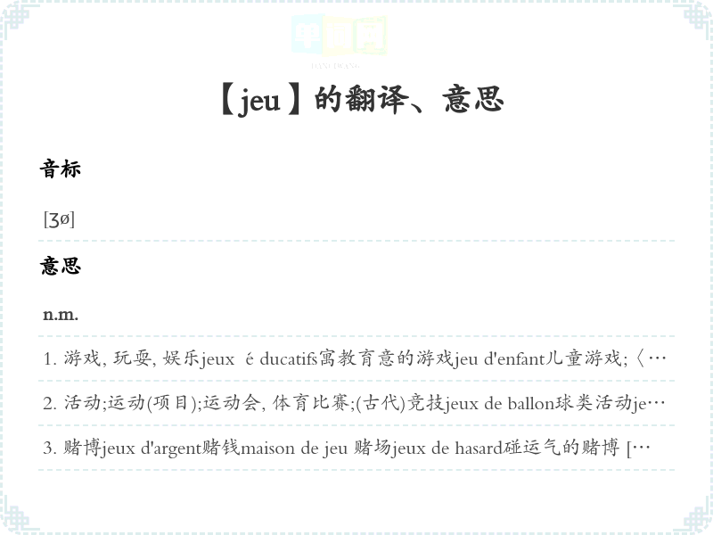 【jeu】是什么意思、字义解释