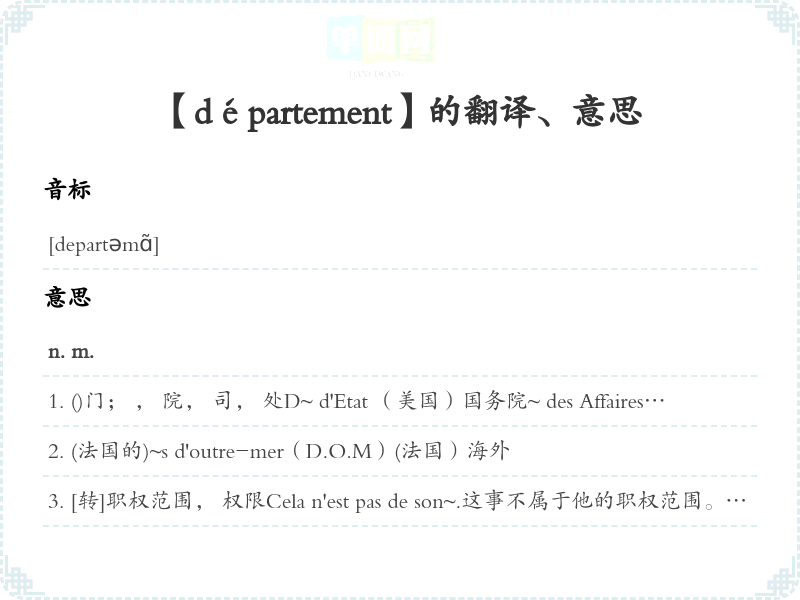 【département】是什么意思、字义解释