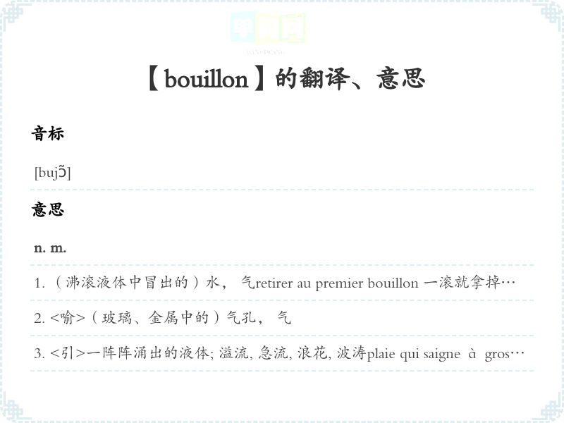 【bouillon】是什么意思、字义解释