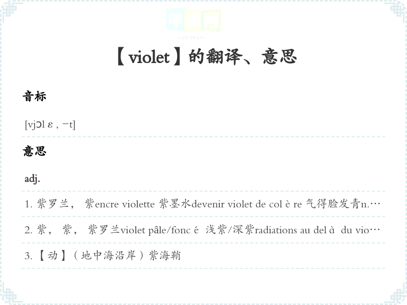 【violet】 联想、 近义词、 同音、近音词 联想词