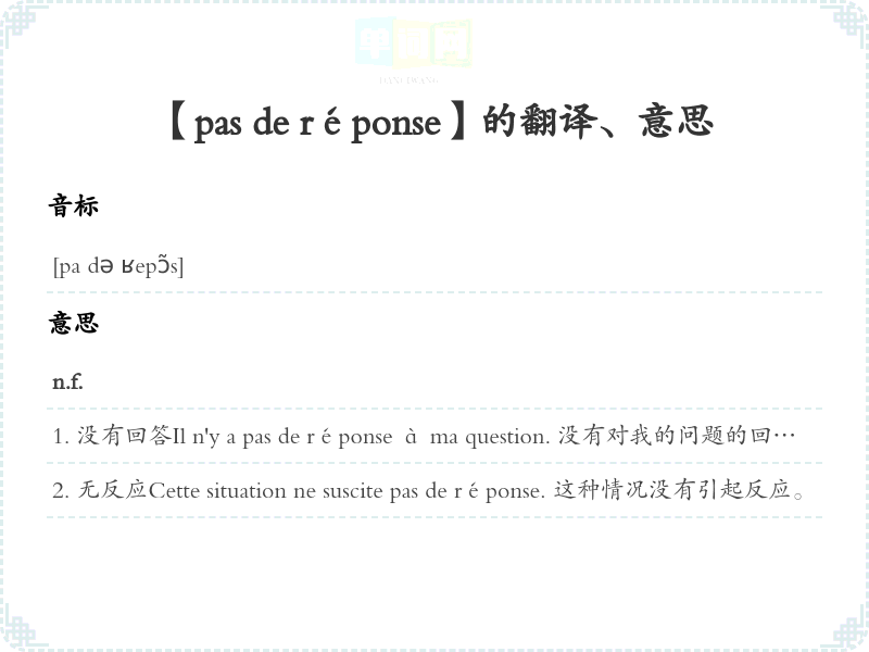 无反应Cette situation ne suscite pas de réponse. 这种情况没有引起反应。