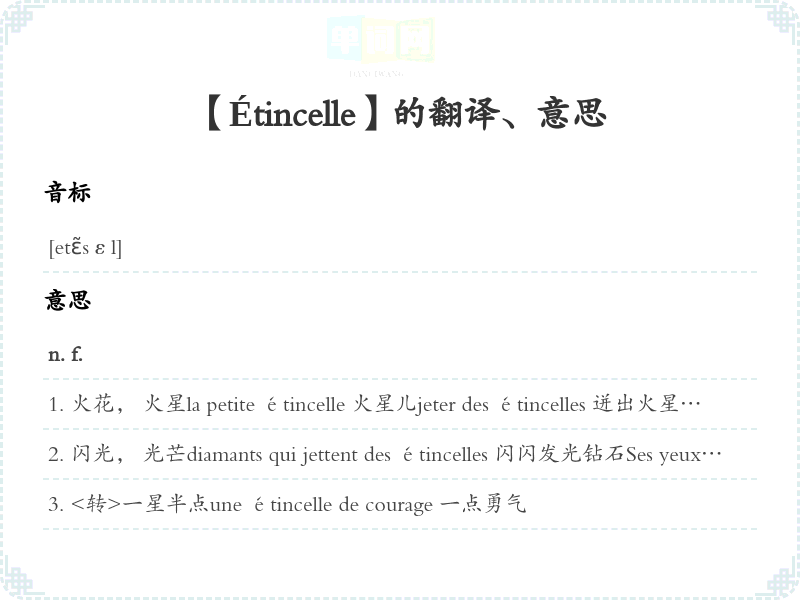 【Étincelle】是什么意思、字义解释